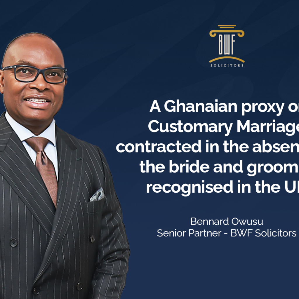 BWF Solicitors is a multi-award winning Law firm of specialist in Immigration, Family, general litigation and all aspects of Ghanaian Law. Based in London, with a partner firm in Accra, Ghana, our lawyers provide expert legal advice and representation, to individuals and businesses, in all aspects of UK and Ghana immigration, general litigation and Family law, and our senior partner is a recognised family, Immigration and Ghanaian law specialist.